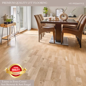 Premium quality of LVT flooring. Which not only enhances the beauty of the interior but also protects you from Termite, Bacteria, Fungus etc. It is completely waterproof and durable. India's Top